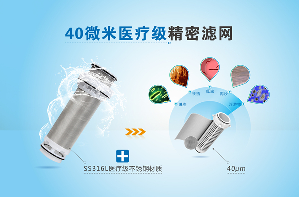 榮事達對于配件的優化不止于此。為保證其擁有更高效的凈水能力,五款智能前置過濾器摒棄市場上大多使用的90100微米濾網,選擇過濾精度更高的40微米精密濾網,可以充分攔截水中紅蟲、鐵銹、泥沙、懸浮物等雜質,其獨特的SS316L醫療級材質,進一步保證使用放心。此外,超大定制濾網出水速度快,其中第六代新品濾網展開面積是普通前置過濾器的3倍以上,出水流量能夠達到8噸每小時,可滿足更多用水需求。