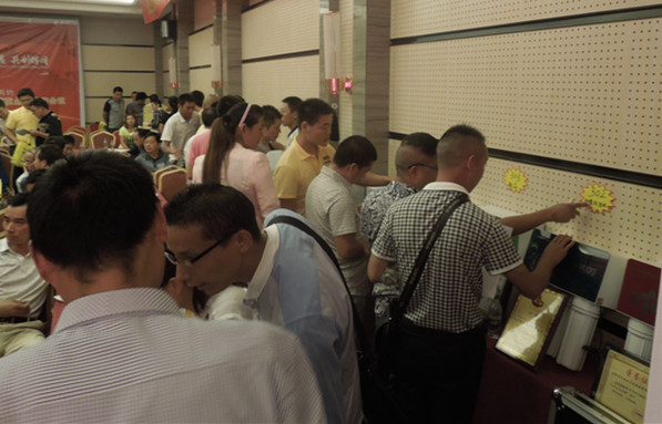 分銷會上,現(xiàn)場訂貨政策解讀贏得廣大客戶一片叫好,訂貨客戶砸金蛋贏燃具套餐、電熱水器、智能手機大獎更是將會議氣氛推向高潮。現(xiàn)場,新客戶合作意向強烈,洽談區(qū)忙得熱火朝天;老客戶現(xiàn)場訂貨訂單接連不斷,抽得大獎更是喜笑顏開。此次深度分銷會議,榮事達新增30多位凈水機經(jīng)銷商,壯大了終端渠道營銷實力,更是給全國代理商異地溝通、學習提供了有益示范。