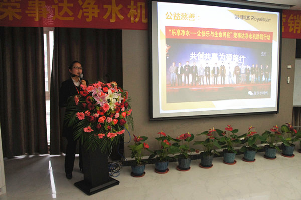 榮事達著力打造產品力,推出2016系列暢銷新品,助力客戶致勝終端。在此次暢銷產品培訓講座上,開發部董部長為客戶解析了暢銷新品賣點,R8櫥下智能純水機以黑、金為主色調,尊貴大氣,產品采用LED智能顯示、自動化沖洗功能、防漏水技術、以及新型韓式龍頭,亮點頗多;箱體LED純水機采用“無壓力罐”構造、“一體式龍頭”設計,櫥上櫥下可隨心安置;速熱飲水機超薄小巧、三秒即熱,并能實現多檔水溫和水量調節,方便、實用、美觀。會上,董部長將榮事達凈水機所采用的膜、壓力桶、泵、龍頭等配件與其他廠家的產品進行比較,從產品質量、安裝拆卸便攜性、用戶使用體驗等多個方面突出了榮事達凈水機的質量和性能優勢。