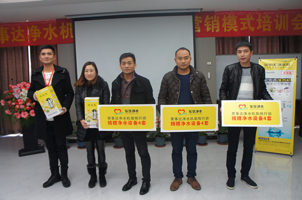 會后,逾八成意向客戶立即簽訂了合作協議,與榮事達攜手合作,暢銷款產品訂單亦是接連不斷。為了酬謝與會客戶,扶持客戶開展“樂享凈水”助殘行動,榮事達精心準備了三輪抽獎環節,多款精美禮品悉數送出,在終極大獎環節,浙江、湖南、河南等6地代理商抽得榮事達凈水設備。