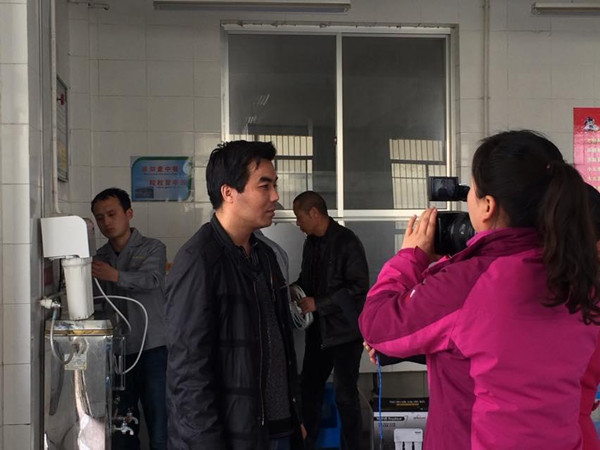 據(jù)了解,富平縣特殊教育學(xué)校共有師生200多人,大部分學(xué)生為聽(tīng)障、智障兒童,由于學(xué)校是寄宿制,那里的大部分孩子吃住都在學(xué)校。然而,由于當(dāng)?shù)刈詠?lái)水水堿十分嚴(yán)重,學(xué)校開(kāi)水器經(jīng)常出現(xiàn)被堵塞的狀況,學(xué)生們?nèi)粘o嬎щy重重。