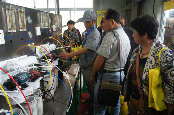 在產(chǎn)品展廳,接待人員給消費(fèi)者解說(shuō)了榮事達(dá)全線產(chǎn)品類(lèi)別,并講解了純水機(jī)、超濾機(jī)、飲水機(jī)、一體機(jī)等產(chǎn)品的不同功能及適用地區(qū)。參觀中,許多鄉(xiāng)鎮(zhèn)地區(qū)消費(fèi)者反映家里井水水垢水堿太嚴(yán)重、雜質(zhì)多,詢(xún)問(wèn)有沒(méi)有適合其使用的凈水機(jī),接待人員向其推薦了榮事達(dá)純水機(jī),詳細(xì)講解了純水機(jī)運(yùn)用RO反滲透技術(shù)、五級(jí)過(guò)濾系統(tǒng),能夠高效去除水垢、水堿、農(nóng)藥、化肥、細(xì)菌、重金屬等有害物質(zhì)的過(guò)濾效果。