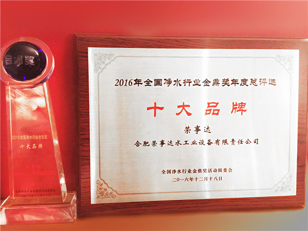 2016年凈水行業(yè)創(chuàng)新發(fā)展年會(huì)暨首屆凈水行業(yè)技術(shù)大會(huì)及2016中國凈水行業(yè)領(lǐng)袖峰會(huì)暨第三屆金鼎獎(jiǎng)?lì)C獎(jiǎng)盛典是對(duì)中國凈水行業(yè)的一次全面梳理,是十分具有價(jià)值和參考意義的年度總評(píng)榜及重要產(chǎn)業(yè)總結(jié)。榮事達(dá)凈水總經(jīng)理王悅生表示,“十大品牌”和“技術(shù)創(chuàng)新企業(yè)”是對(duì)榮事達(dá)品牌價(jià)值和創(chuàng)新能力的高度認(rèn)可,榮事達(dá)將不負(fù)眾望,繼續(xù)發(fā)揮好行業(yè)標(biāo)桿的作用。