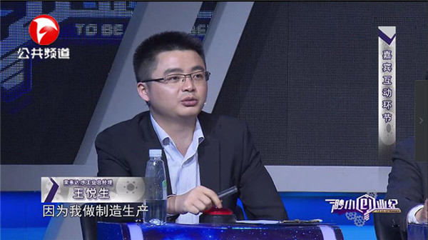 在5月12日播出的節目中,王悅生總經理與其他在場嘉賓一同聆聽了三位選手的創業項目及融資計劃。王總結合自己豐富的項目運營及市場運作經驗,幫助選手分析項目市場前景、投資價值和未來發展方向,并針對項目的運作模式、產品的規范化生產等方面提出了專業的、極具參考價值的建議,助力選手實現品牌發展與財富積累的最大價值,得到了現場嘉賓、參賽者、觀眾的一致認可,掌聲不斷。