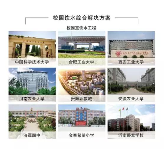 榮事達始終將打造“打造產品核心競爭力”作為宗旨,積極實施名牌建設戰略,走自主創新之路,多位一體全面提升企業綜合實力。公司尤為注重科技研發與產品創新價值,在家用機的研發上,打造R8s雙膜純水機、智能直飲機、自吸式箱體LED純水機等多個系列產品,融入雙膜專利、新型卡接式濾芯等創新技術與專利成果,以優異品質提升品牌知名度與美譽度;在直飲水領域,榮事達更是成就矚目,先后獨立承建了合肥新橋國際機場、合福高鐵沿途站點、2016唐山世界園藝博覽會、三亞鳳凰國際機場等大型公共直飲水項目,廣受業內及媒體關注。作為首批飲用水設備進校園推薦試點單位之一,榮事達多年專注于校園直飲水工程建設,集中企業研發優勢不斷推出新品,充分滿足學校飲水量大、凈化效果好、安全性能高、使用成本低等多方面要求;實行“專案定制”,根據校園飲水人數、飲水特征、水路布局等進行設計、施工,為學生量身打造安全飲水系統,定制了中國科學技術大學等近千個校園直飲水工程,成為數千所校園的放心選擇,呵護百萬師生。
