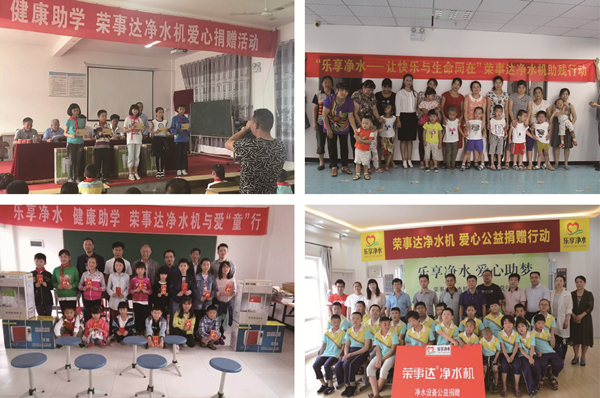 “樂享凈水.健康助學(xué)行動”由榮事達水工業(yè)公司2011年發(fā)起,向貧困地區(qū)學(xué)校免費提供直飲水設(shè)備,援建校園直飲水工程,開展健康知識講座等志愿服務(wù),讓青少年兒童喝上健康衛(wèi)生的飲用水,同時樹立科學(xué)的飲水理念,幫助孩子茁壯成長。