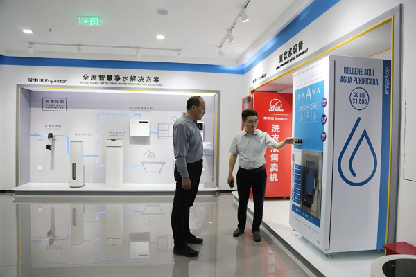 此次考察,特別聚焦于集團(tuán)順應(yīng)新基建趨勢,結(jié)合物聯(lián)網(wǎng)、大數(shù)據(jù)和云計算技術(shù),首創(chuàng)的社區(qū)智能凈水工廠項目,領(lǐng)導(dǎo)一行全面而深入地了解智能凈水工廠在社區(qū)新場景下的設(shè)計思路、工程建設(shè)、運營策略以及合作模式等。從設(shè)備的智能制造,到直飲水工藝流程的精細(xì)管理,再到智能管理平臺的高效運營,這一系列環(huán)節(jié)構(gòu)成了集團(tuán)所打造的一體化、全方位、智能化的凈水產(chǎn)業(yè)鏈。項目凸顯了集團(tuán)在新質(zhì)生產(chǎn)力背景下所做出的創(chuàng)新突破,致力于追求可持續(xù)的高品質(zhì)發(fā)展新方向。